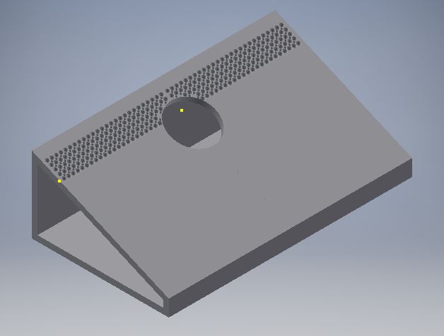 My solution was to create a laptop stand that was: durable, compact and helped with airflow. I made a simple design with holes in the top to allow airflow.