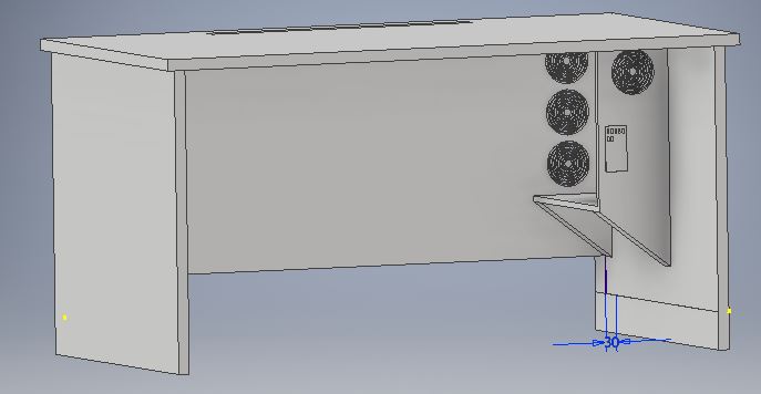 The problem I focused on for this project was the often excessive power cords involved in a basic computer desk setup. These cords can create both a trip and fire hazard if placed incorrectly. My solution was to create a desk with all of the components of a generic desk setup built inside the desk, thus reducing the number of cords needed and storing them in a safe area. I used Autodesk Inventor to digitally 3D model the design and then 3D printed a prototype.