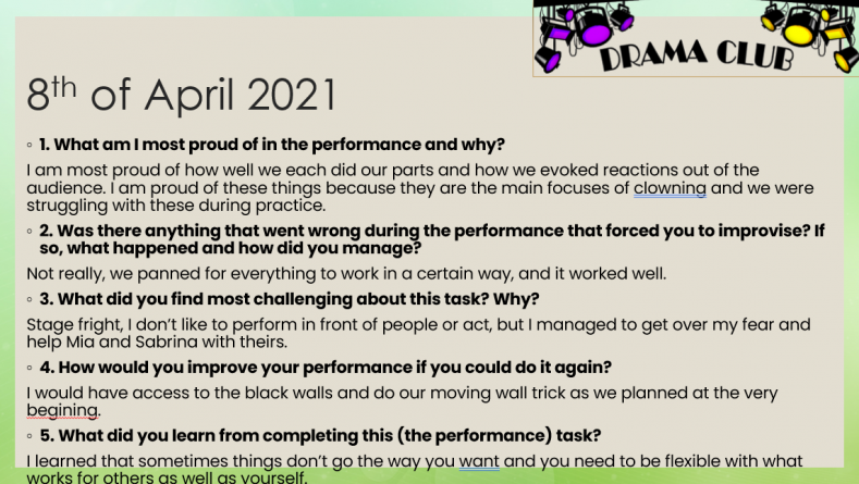 Under the umbrella exploration of the topics of Clowning and Soap Operas, Year 8 Drama students developed their skills in characterisation, monologues, dialogues, and audience communication. Each student also needed to work in groups for their performances, facilitating the advancement of their teamwork, collaboration, and communication skills.